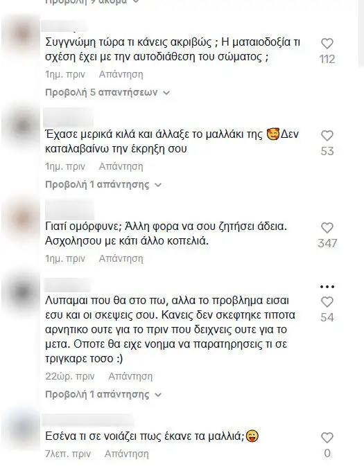 Οι αντιδράσεις κάτω από την ανάρτησή της είναι αρκετές – Δες μερικά από τα σχόλια που της έγραψαν στο Tik Tok: