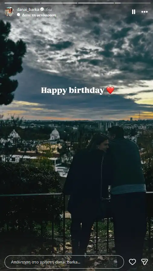 Τα ξημερώματα της Δευτέρας 24 Νοεμβρίου η Δανάη Μπάρκα ανέβασε στο instagram τρυφερή φωτογραφία με τον σύντροφό της από ένα τρυφερό στιγμιότυπο σε κοινό τους ταξίδι. Η ανάρτηση έγινε με αφορμή τα γενέθλιά του, αφού η ίδια έγραψε στη λεζάντα: Happy Birthday.