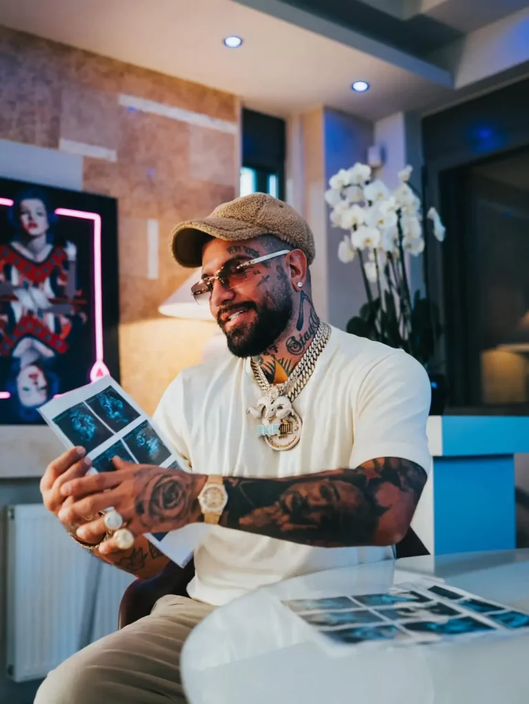 Πιο ευτυχισμένος από ποτέ, ο τράπερ ποζάρει στον φακό κρατώντας τον υπέρηχο του μωρού του και στη λεζάντα της ανάρτησής του έβαλε δύο μπιμπερό.