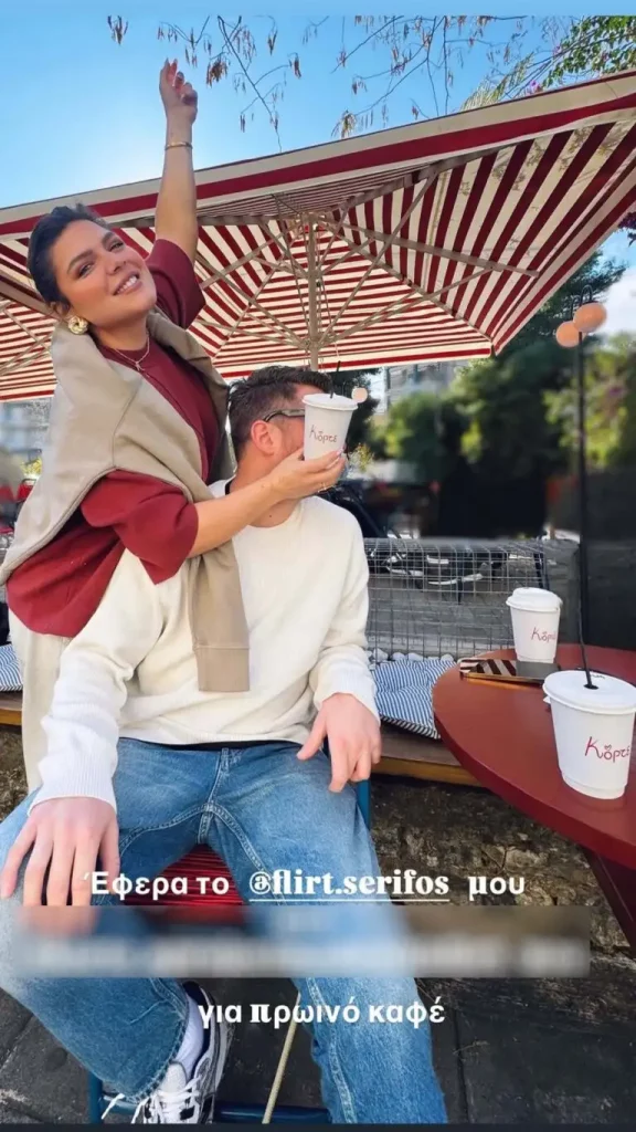 Στις νέες της αναρτήσεις στο instagram η Δανάη Μπάρκα μοιράστηκε φωτογραφίες από την Καλαμάτα, ενώ σε μία από αυτές κρύβει με το χέρι της το πρόσωπο του συντρόφου της σχολιάζοντας πως τον έφερε για πρωινό καφέ.