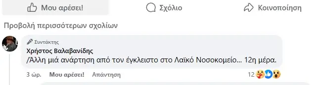 Μάλιστα, πριν από δύο ημέρες, ο Χρήστος Βαλαβανίδης είχε γράψει στα social media: «(10η μέρα στο Λαϊκό και… δουλεύει ακόμα το ρημάδι)