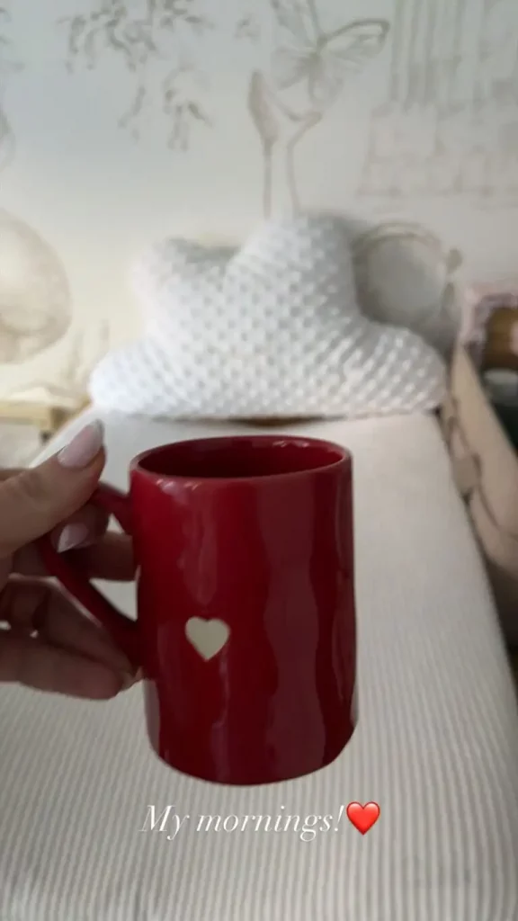 Στη φωτογραφία που ανέβασε στον προσωπικό της λογαριασμό, κρατά μια κόκκινη κούπα καφέ με ένα μικρό λευκό καρδιά, γράφοντας «My mornings». Η Ελένη Τσολάκη πέρασε το πρωινό της στο σπίτι, αφιερώνοντας χρόνο στην μονάκριβη κόρη της, επιλέγοντας την οικογένεια αντί για τους έντονους ρυθμούς της καθημερινής τηλεοπτικής ρουτίνας.