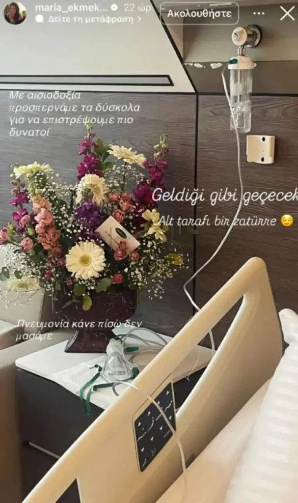 Στο νοσοκομείο βρίσκεται η Μαρία Εκμεκτσίογλου, όπως αποκάλυψε η ίδια με ανάρτησή της στα μέσα κοινωνικής δικτύωσης.
