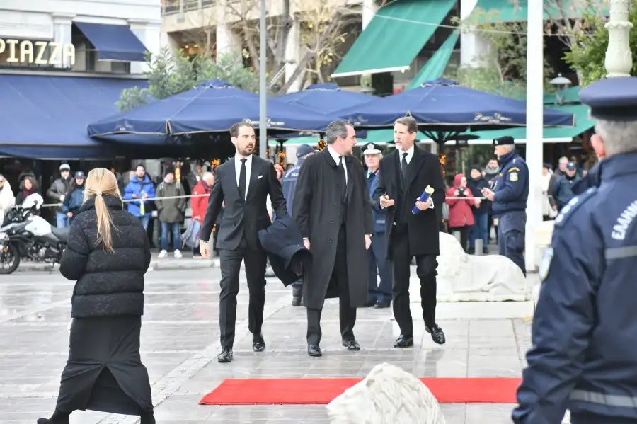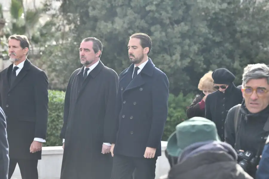Παύλος Ντε Γκρες, Νικόλαος Ντε Γκρες και Φίλιππος Ντε Γκρες έφτασαν λίγα λεπτά πριν από τις 10.30 στη Μητρόπολη Αθηνών για την κηδεία της πριγκίπισσας Ειρήνης.