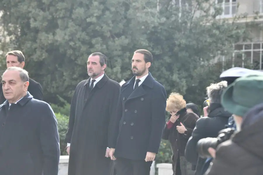 Τα τρία αδέλφια, συγκινημένα από την απώλεια της θείας τους -αδελφής του πολυαγαπημένου τους πατέρα, τέως Βασιλιά Κωνσταντίνου- την αποχαιρετούν σήμερα για τελευταία φορά.